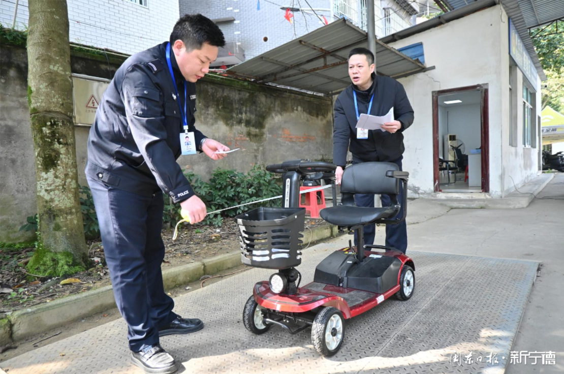 市车管所工作人员正在检验即将上牌的道路型电动轮椅车 记者 朱灵塬 摄