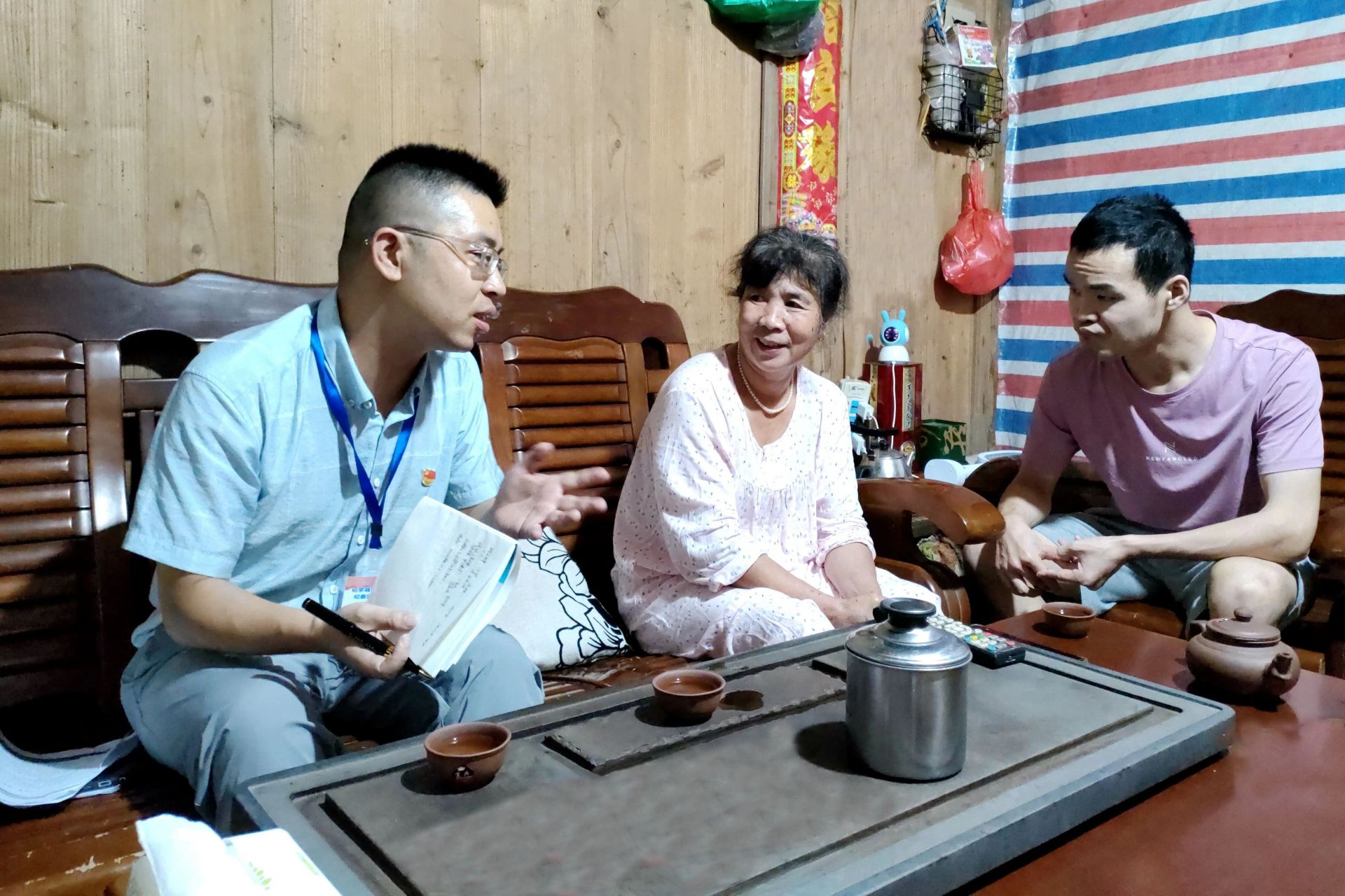 柘荣县城郊乡纪检监察干部在贫困户家中了解相关情况