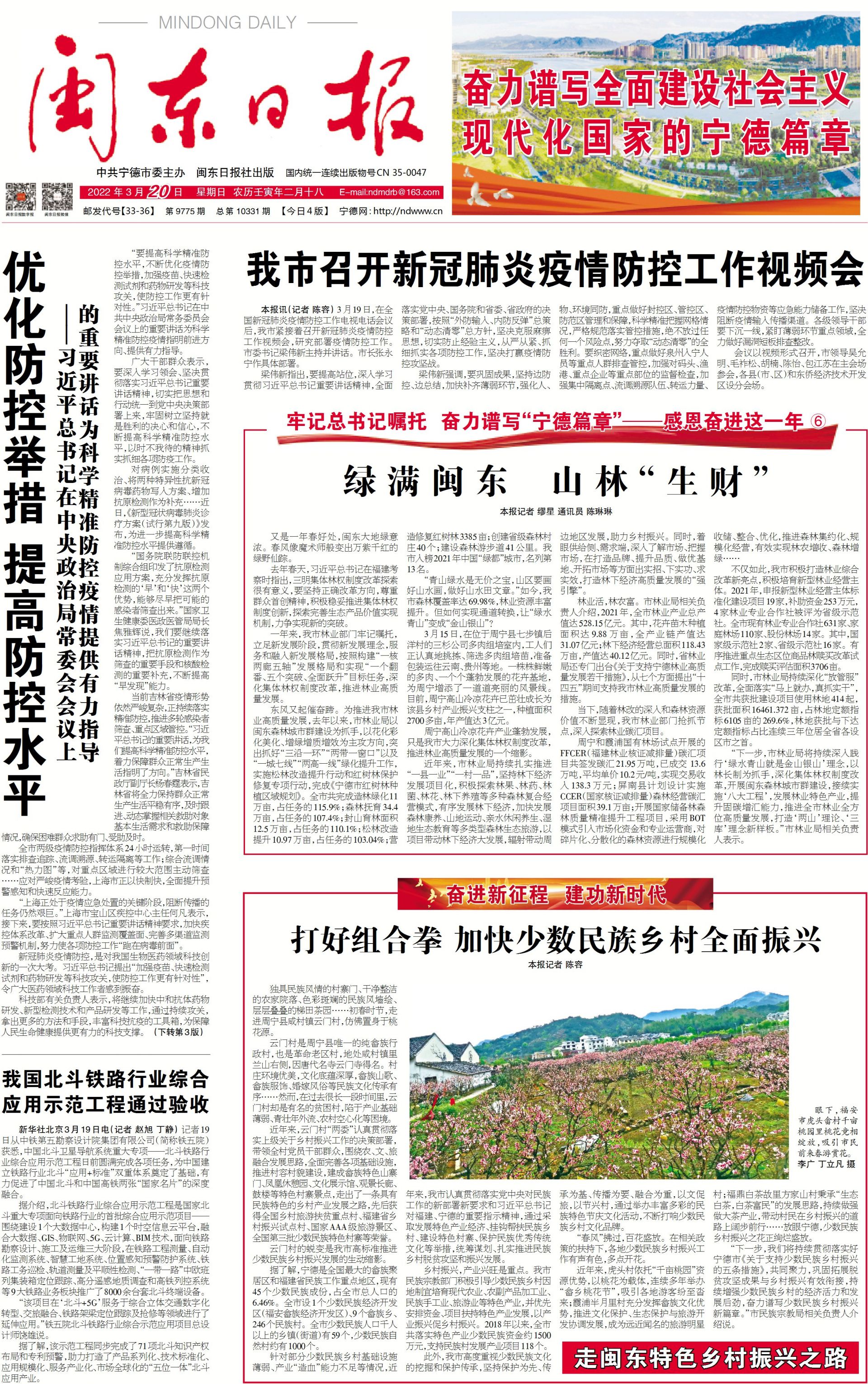 “下一步,市林业局将持续深入践行‘绿水青山就是金山银山’理念,以林长制为抓手,深化集体林权制度改革,开展闽东森林城市群建设,接续实施‘八大工程’,发展林业特色产业,提升固碳增汇能力,推进全市林业全方位高质量发展,打造‘两山’理论、‘三库’理念新样板。”市林业局相关负责人表示。