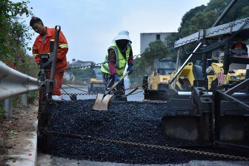 11月21日,记者在国道G104线蕉城区疏港路口至金涵苗圃段改扩建工程建设现场看到,疏港路口至金漳路口段3.3公里的道路路面沥青已经基本铺设完毕,并施划上交通标线。金漳路口至金涵苗圃段建设则正在继续推进。