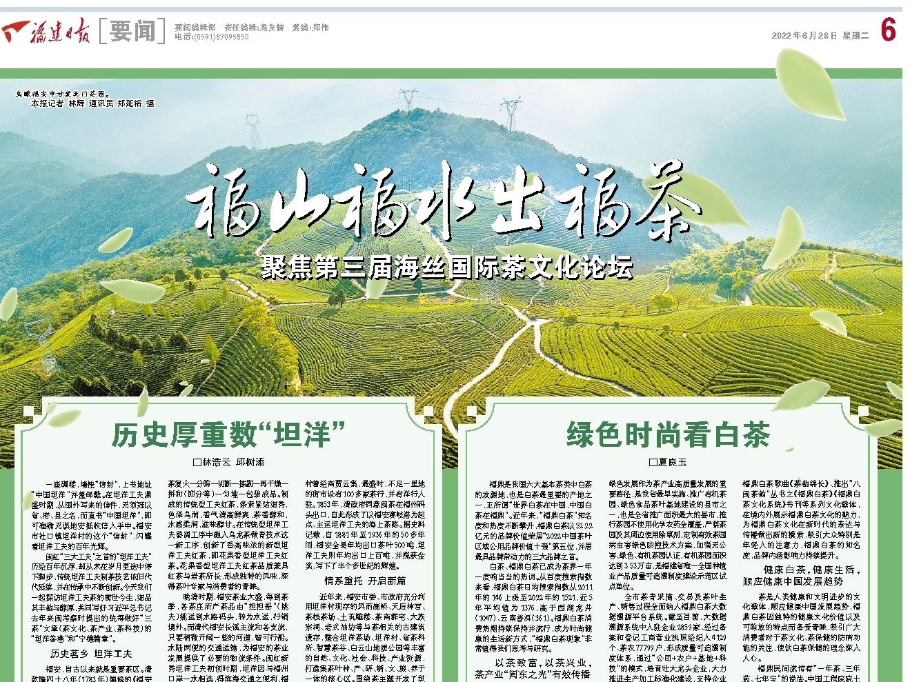 福安是革命老区,也是“坦洋工夫”红茶的发祥地。近年来,在福安市委、市政府的领导下,福安茶产业在继承传统工夫红茶加工技艺的基础上,利用丰富的茶树良种资源优势,独创性开发花果香型工夫红茶,福安红茶产业年综合产值达到110亿元,已成为福安乡村振兴的重要抓手。