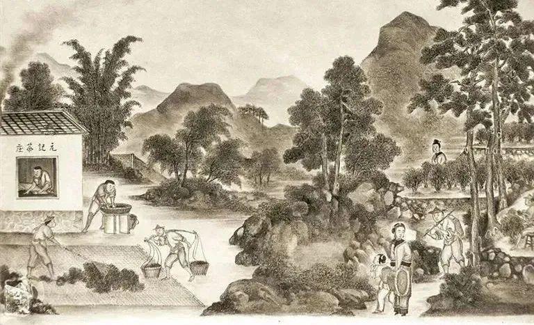 裕昌洋行主要红茶供应商——福安坦洋元记茶庄制茶场景图(清代)。图源闽东日报