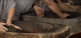 匀堆,按各筛号茶的粗细、长短、轻重,多次均匀拼和堆积。